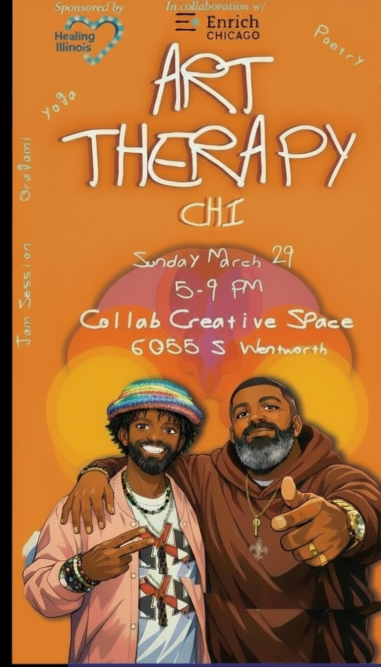 Join us for a BIPOC-Centered Art Therapy Session with Lawrence "Binkey" Tolefree, co-hosted by Enrich Chicago and made possible through a generous sponsorship from Healing Illinois. This space is BIPOC-centered, and folks of all identities are welcome.